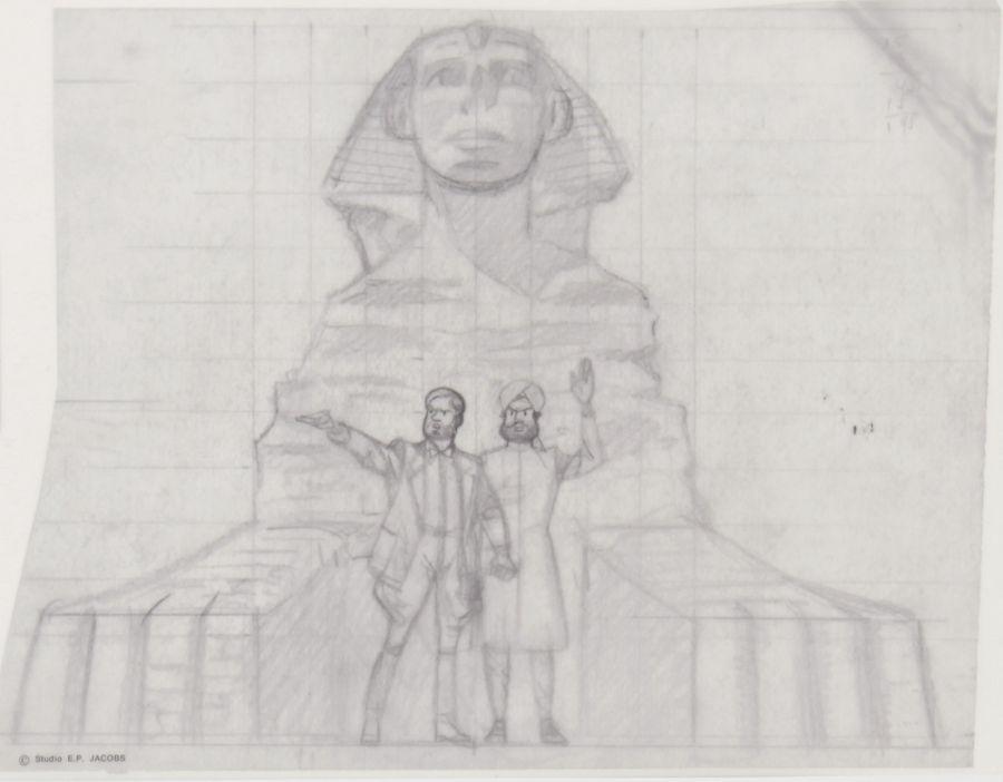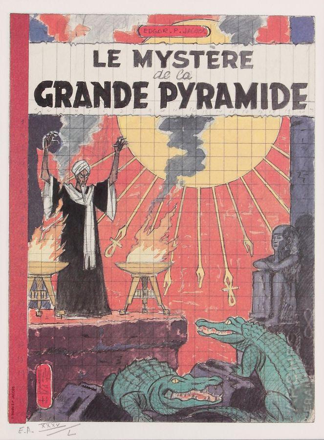 Portfolio « Hommage à E.P. Jacobs » n°/200 (Ed. Espace BD, 1989) avec le projet de couverture du tome 2 du Mystère de la grande pyramide.