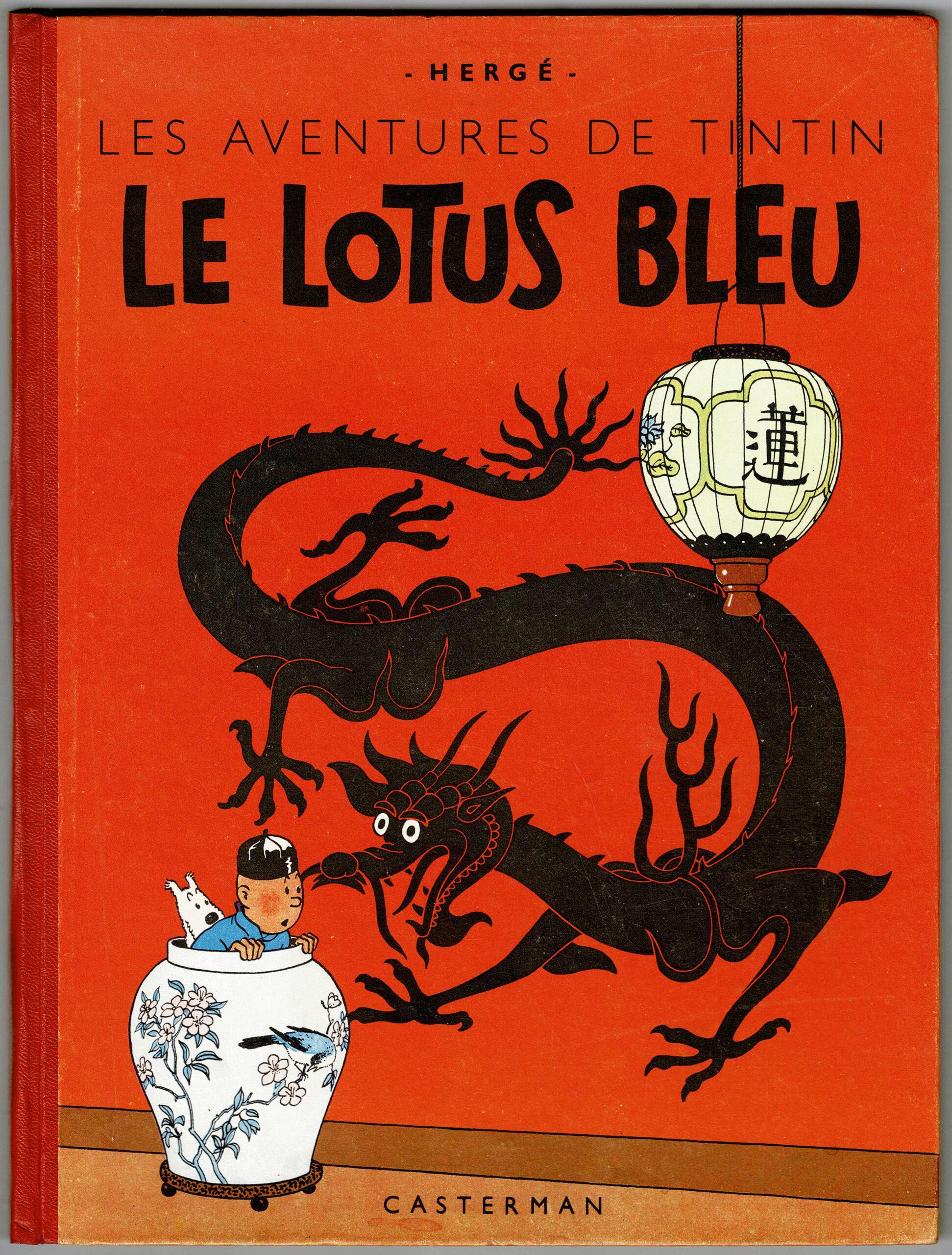 Le Lotus bleu, édition originale couleur de 1946 (B1, papier épais). Proche de l’état neuf.