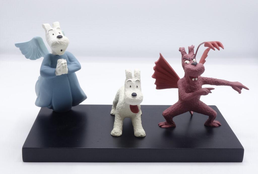 LEBLON-DELIENNE : Tintin, la tentation de Milou (10), l’ange & le diable entourent Milou déshydraté, Tintin au Tibet, 1994, n°/250. Rare.
