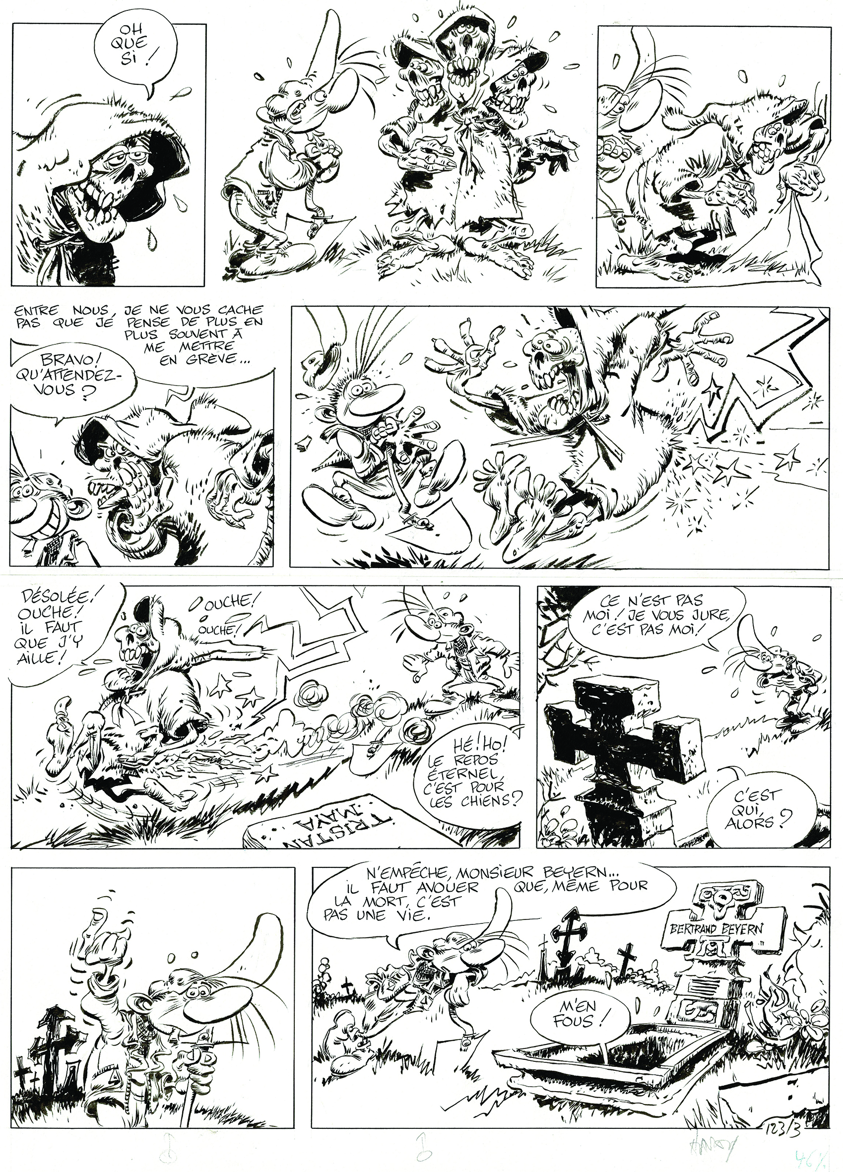 Pierre Tombal, planche originale à l’encre de chine. Dimensions : 56 cm x 40 cm.
