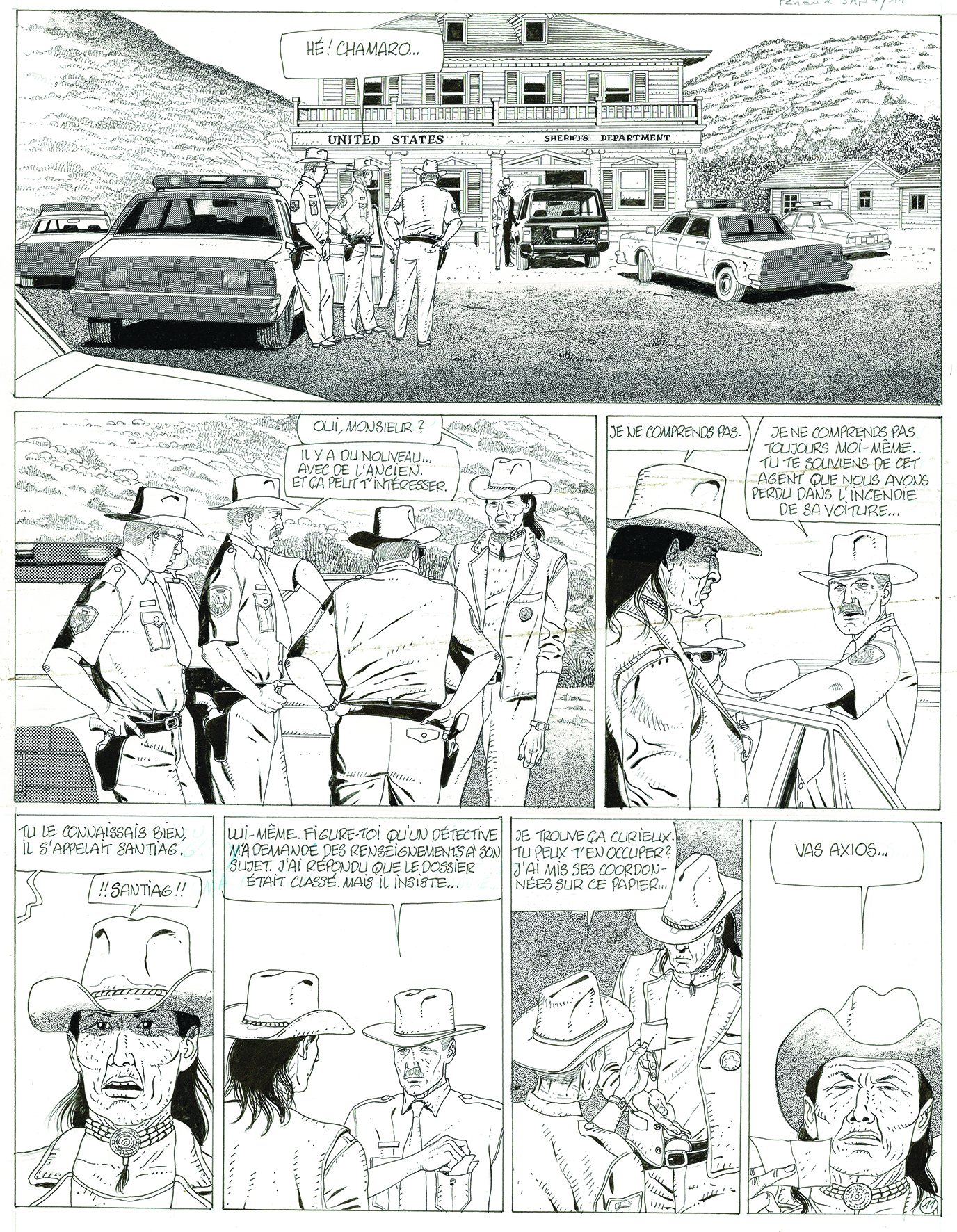 Santiag T4, planche originale à l’encre de chine. Dimensions : 48,5 cm x 35,5 cm.