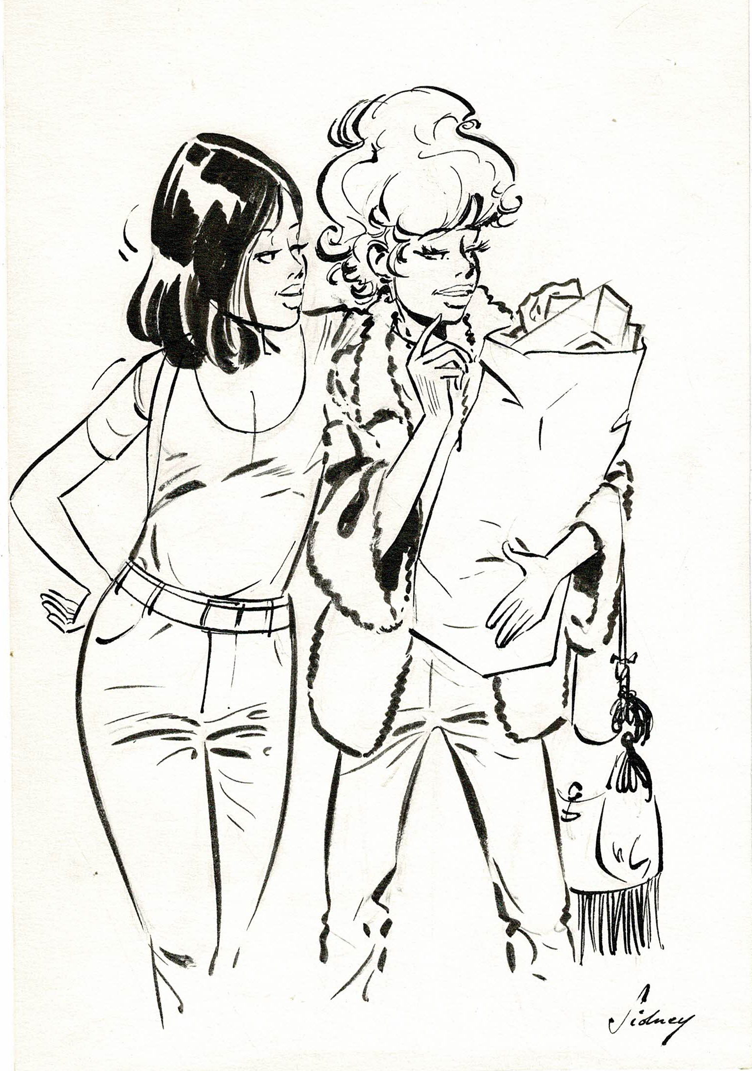 Julie, Claire, Cécile, dessin original à l’encre de chine. Dimensions : 19 cm x 12,5 cm.