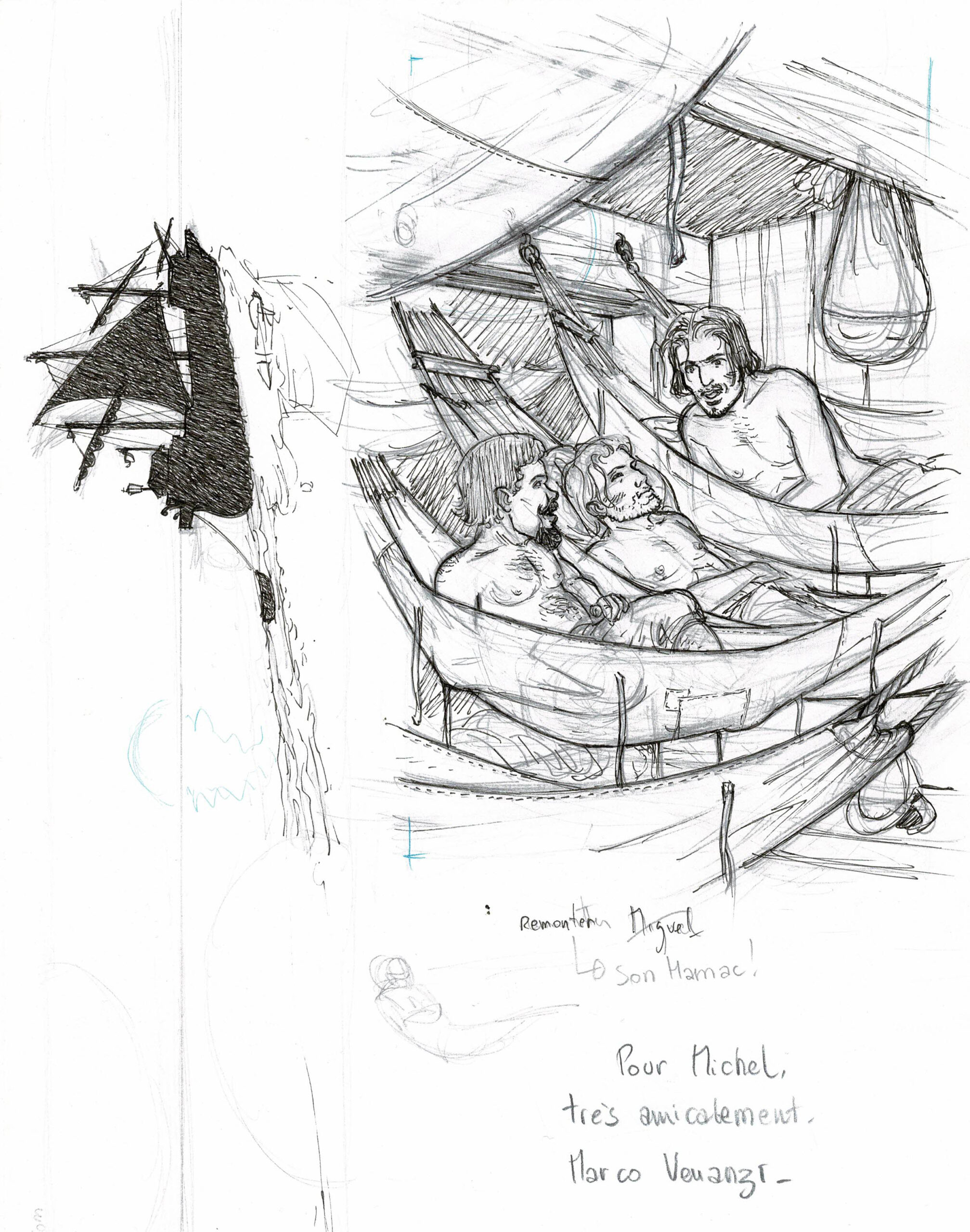Hidalgos, dessin original à la mine de plomb, dédicacé et signé. Dimensions : 29,5 cm x 21 cm.
