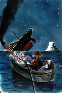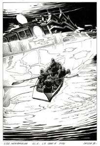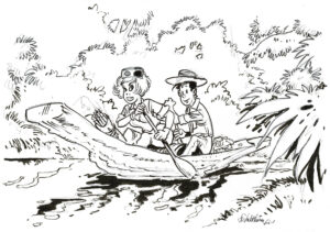 [ Estimation 1200 – 1500 ] FARIBOLES : Spirou, Fantasio, Spip et le Marsu dans la pirogue, Retour de Palombie, n°/275 exemplaires, 2021, 63 cm, BC.