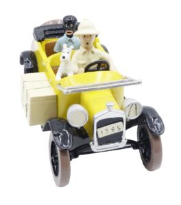 [ Estimation 900 – 1100 ] PIXI : Tintin, 4564, avec Milou et Coco dans la voiture jaune, la Ford T, Tintin au Congo, 1995, 1000 ex., 13 cm, BC.