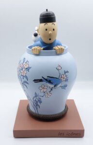[ Estimation 800 – 900 ] PIXI REGOUT : Tintin, la potiche, grand modèle socle bois (30000), Le Lotus bleu, 1991, n°, 28 cm, C étiquette autocollante sous le socle.