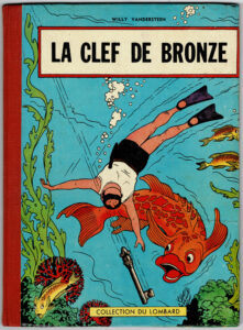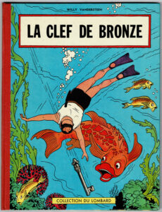 [ Estimation 500 – 600 ] La Clef de bronze, édition originale belge de 1957, rare édition Dargaud (avec point Tintin). Proche de l’état neuf.