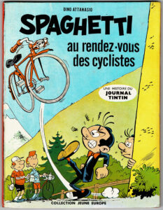 [ Estimation 800 – 1000 ] Au rendez-vous des cyclistes, édition originale cartonnée de 1963 (JE 17). Rare. Proche de l’état neuf.