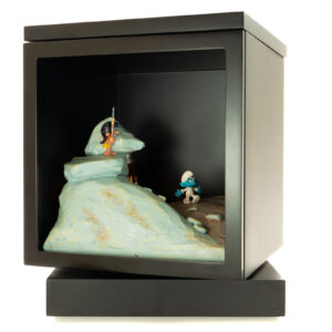 [ Estimation 150 – 250 ] PIXI : Tintin, objet du mythe, 5602, la boite de crabe, Le Crabe aux pinces d’or, 1995, 2075 ex., 3 cm, BC.