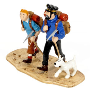[ Estimation 100 – 150 ] MOULINSART PLOMB : Tintin, 46204, Haddock sacs à dos avec Milou, Tintin au Tibet, 2004, n°/2000, 8 cm, BC.