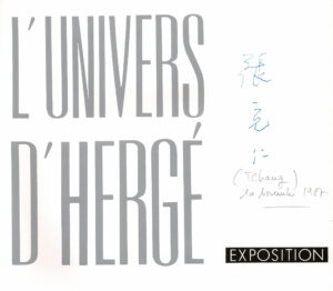 [ Estimation 100 – 150 ] Catalogue d’exposition l’univers d’Hergé, agrémenté d’une signature de Tchang. Très bon état.
