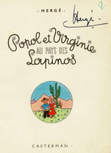 [ Estimation 100 – 150 ] Popol et Virginie au Pays des Lapinos, édition originale de 1952, agrémenté d’une signature d’Hergé. Bon état.