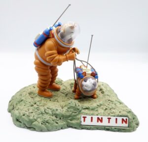 [ Estimation 1100 – 1300 ] MOULINSART PLOMB : Tintin, 46901, la scène prestige : l’atelier de Tournesol, Le Trésor de Rackham le Rouge, 1999, n°/1000, 30 cm, BC.